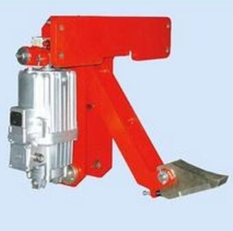 YFX-防風(fēng)鐵契制動器安裝在起重機(jī)行走臺車的兩端當(dāng)起重機(jī)行走時,司機(jī)先按動鐵契啟 動開,鐵契在電力液壓推動器的作用下提起;然后起重機(jī)行走,當(dāng)起重機(jī)停車時間,鐵契可自動或手 動放下,當(dāng)起重機(jī)被風(fēng)吹動時,車輪壓在鐵契上,是起重機(jī)無法再移動,達(dá)到防風(fēng)制動效果。
